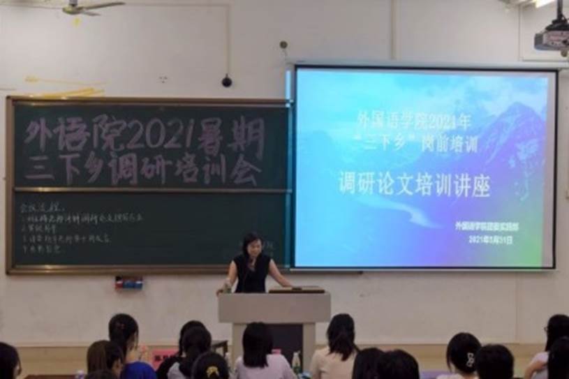5月31日,外国语学院在教三611教室举办了2021年暑期三下乡调研培训会。此次会议由实践部干部甘晓丽主持,刘玉梅教授主讲。外国语学院辅导员黄子琦、团委秘书长、实践部干部以及调研队队长参加了本次会议。