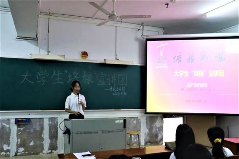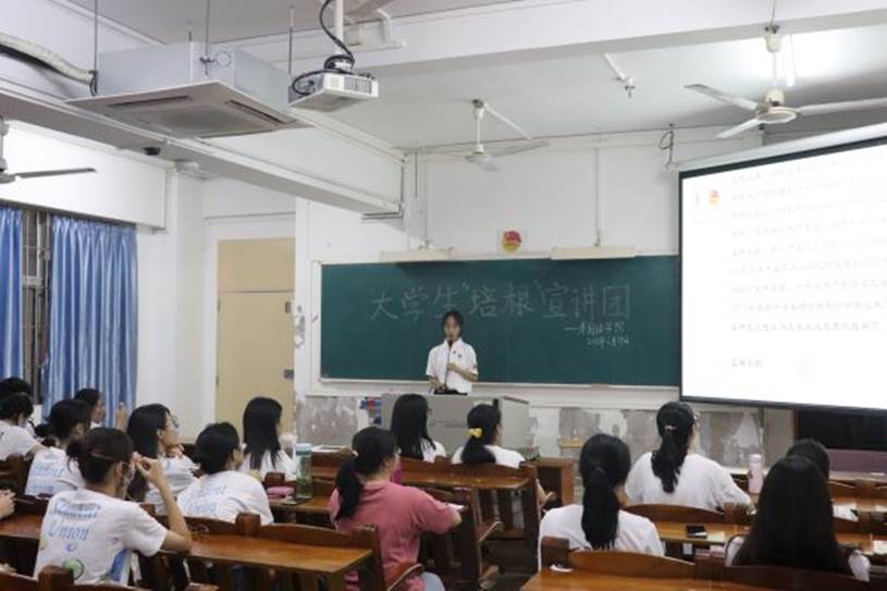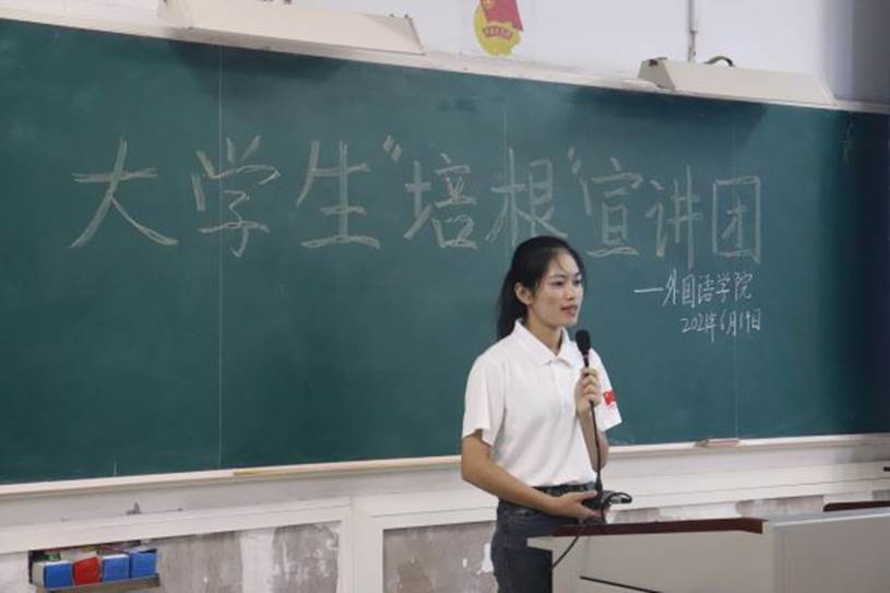 6月19日晚,学校大学生培根宣讲团走外国语学院,为学院青年学子带来一场生动的党课。本次活动由宣讲团成员程月燕主持,学生会全体成员参加了本次活动,宣讲团成员谭秋雨与程月燕宣讲。