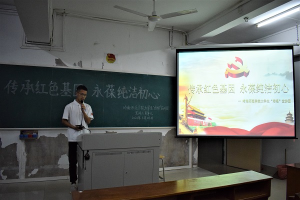 6月23日晚上,外国语学院大学生“培根”宣讲团成员肖年儿在教三504室举办了题为《传承红色基因,永葆纯洁初心》的党史宣讲会。外国语学院学生会全体工作人员参加了此次宣讲会。