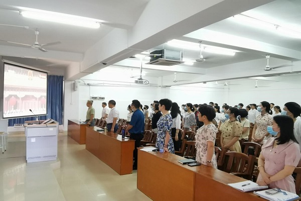 7月1日上午8时,为庆祝中国共产党成立100周年大会在北京天安门广场隆重举行,中共中央总书记、国家主席、中央军委主席习近平发表重要讲话。外国语学院全体教职工党员、学生党员于教三605室集中收看庆祝大会直播,聆听习近平总书记的重要讲话,感受党的百年光辉历程。