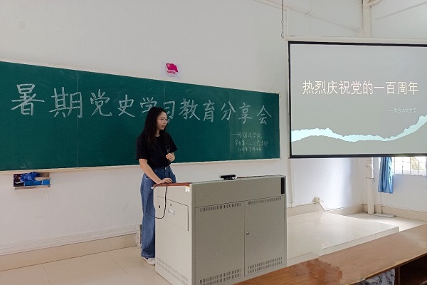 为深入学习贯彻习近平总书记“七一”重要讲话精神,外国语学院学生各学生支部坚持“放假不停学”的宗旨完成了暑期党史学习教育。9月4日早上,外语院学生第一、第二、第三党支部在教108举行“暑期党史学习教育分享会”。出席此次分享会的有陈韵桥老师、学生第一、第二、第三党支部全体党员。