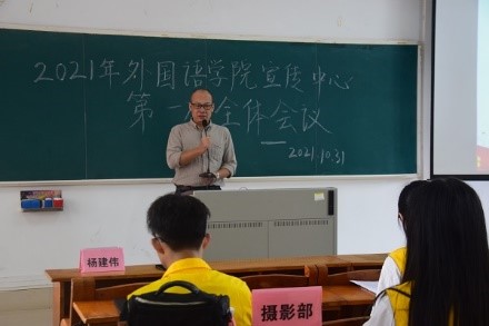 10月31日上午,外国语学院宣传中心召开了第一次全体会议。出席本次会议的有,外国语学院党委杨建伟副书记、外国语学院宣传中心主任汪景有、副主任王米蜜及全体干部。本次会议由外国语学院宣传中心副主任张希彤主持。