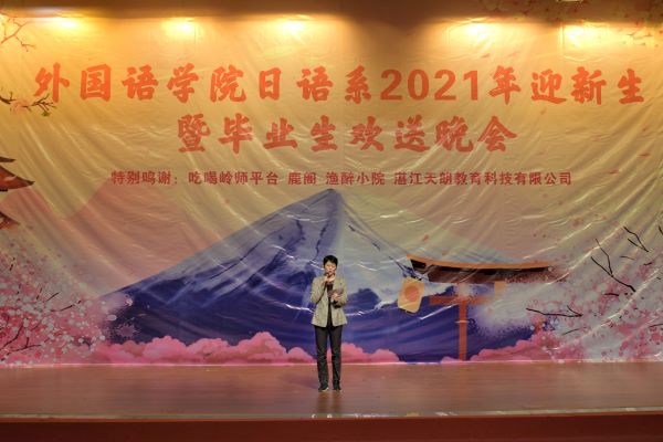 晚会开始前,吴晓春致辞。她指出,本次晚会既是为了迎接日语系新同学的到来,也是为了欢送日语系毕业生的远行。吴晓春寄语日语学子,“希望同学们能够好好规划未来的时光,走出广阔精彩的人生。秉承“做个好人,学好日语”的系训,不负在岭师度过的四年青春,成为经世济民、管乾理坤的人才。”