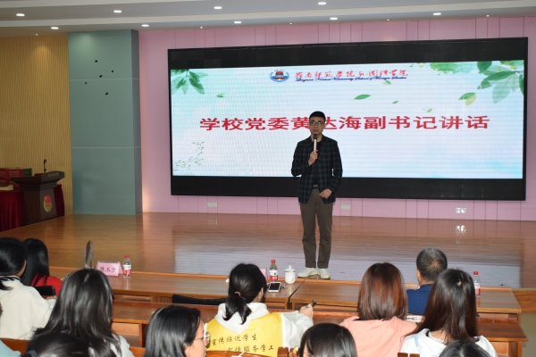 黄达海给本届外语文化节的赞助单位——华希国际教育科技有限公司颁发纪念品,并作重要讲话。他从参与度高、内容丰富、社会支持和选手外语水平高等四个方面对本届文化节给予了肯定。他指出,在当今全球化、信息化的时代,随着我国综合国力的增强,中国走向世界,广泛参与国际事务会越来越多,中国人在国际交流中,如何讲好中国故事,讲清中国道理,讲明中国道路的表达力和影响力都有赖于外语能力。他建议,每年一届的外语文化节是有鲜明的主题,围绕主题开展相关活动。要做好特色凝练,形成品牌。要加强辐射影响,让外语文化节不仅仅是外国语学院的文化节,还要是岭南师范学院甚至是湛江市的外语文化节。
