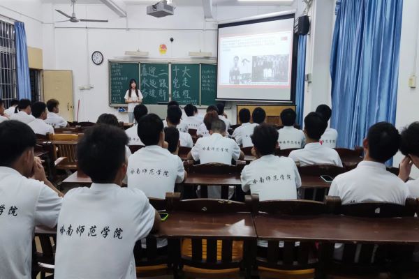 培根铸魂,血脉相承。4月25日晚,外国语学院培根宣讲团于教二107面向21级体育教育6班全体学生,进行以“学习党史,赓续红色血脉”为主题的宣讲,主讲人为21级英语4班王培贤。