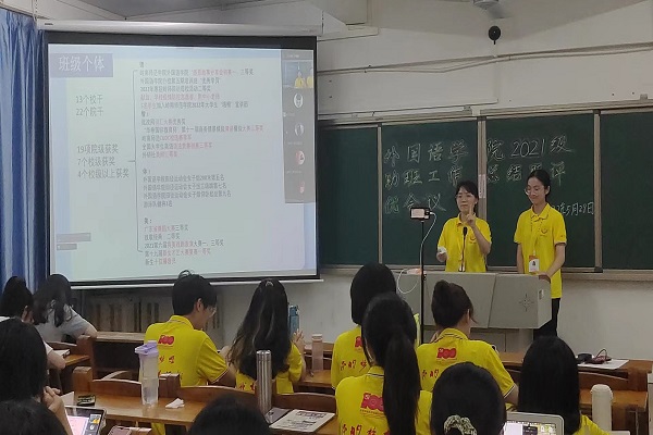 5月28日晚上,外国语学院在教三507开展了2021级助理班主任总结与评优工作。出席本次评优会的有外国语学院杨建伟副书记(线上参会),学工办王零仪老师(线上参会)、符琪琪老师,2021级全体学生(线上参会)、2019级助理班主任以及部分2020级的学生代表。