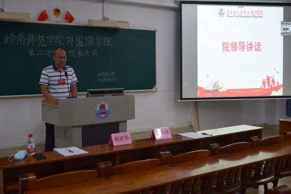 5月29日上午,外国语学院召开第二次学生代表大会,会议认真落实疫情防控有关要求,主会场设在教三405室。本次大会由学生会主席团成员梁铠谊、刘诗韵主持,出席本次大会的有:外国语学院党委书记陈永国、杨建伟副书记、学工办老师、校学生会主席团成员黄文权、还有各院级机构干部代表以及102名正式代表。