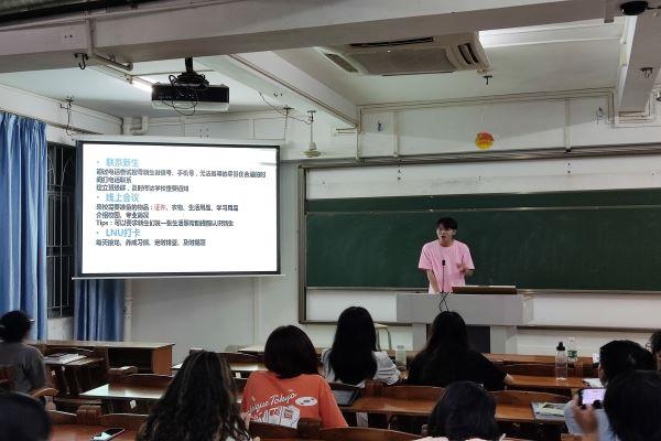 6月18日晚,外国语学院在教三502举行了22级外国语学院助班培训会。外国语学院勤工助学中心副主任冯嘉怡、21级助班代表黄应璐、袁培起、陈德聪、李朗以及22级助班参加了本次会议。会议由外国语学院学工办老师陈秋湛主持。