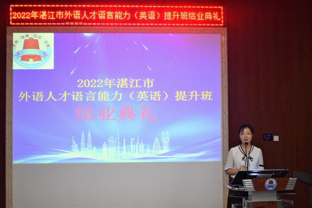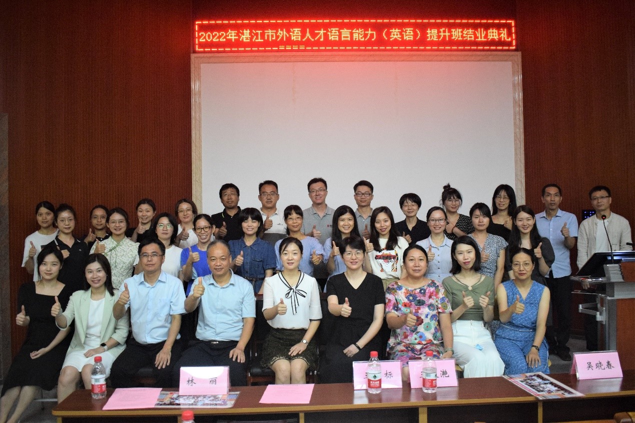 此次举办的湛江市外语人才语言能力(英语)提升班进一步提高了我市外语人才的语言水平,深化校地务实合作,推动互补共赢发展、推动湛江高水平开发、高质量发展。教师代表陈拔萃和学员代表毛颖、李捍华、陈进聪、罗燕东分别发言,毛颖、李捍华、陈进聪、蔡静、罗燕东获优秀学员证书。