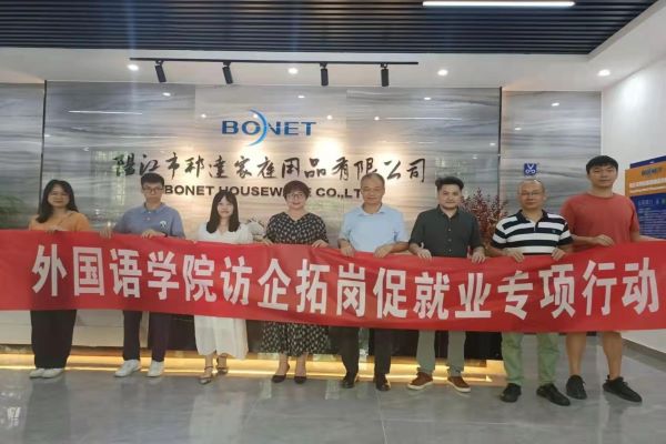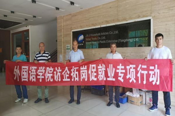 为持续提升人才培养质量,拓宽毕业生就业渠道。6月28日,外国语学院党委书记陈永国、党委副书记杨建伟、辅导员黄子琦一行3人,先后走访了阳江市邦达家庭用品有限公司、阳江市丰景商贸有限公司、阳江市佳积家庭用品有限公司、阳江市秀达贸易有限公司,了解行业发展趋势和人才需求形势,搭建院企合作交流平台,精准推荐优质岗位,推动访企拓岗促就业专项行动走深走实。