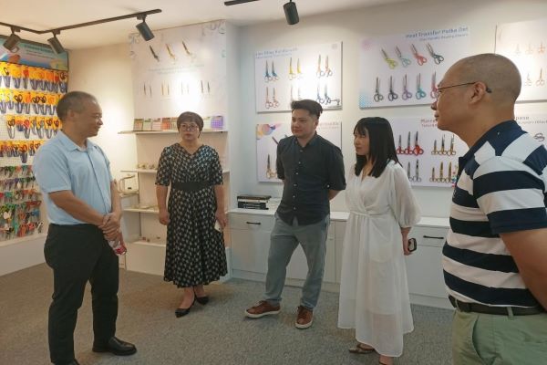 陈永国一行首先来到阳江市邦达家庭用品有限公司,参观公司发展历程陈列展区,深入了解企业规模、岗位需求以及人才储备等情况,并在随后的座谈会上,陈永国书记详细介绍了外国语学院在专业建设、师资力量、人才培养、升学就业等方面取得的新成绩。他表示,此次专项行动的目的是要了解行业发展现状和企业用人新要求,加强与企业合作,多维度拓宽就业渠道,共同培养符合社会发展要求的高素质人才,切实推动毕业生高质量就业。公司负责人钟流芳对陈永国一行的到来表示欢迎,作为校友的她,对母校有着深厚的感情,表达了与岭南师范学院外国语学院深入开展院企合作的意愿。