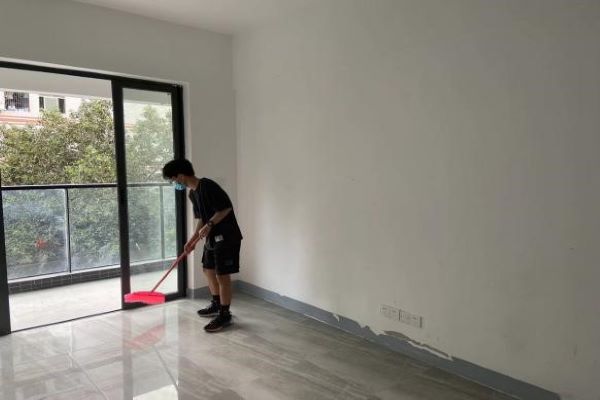 (迎新前辅导员和助班为新生打扫宿舍1)