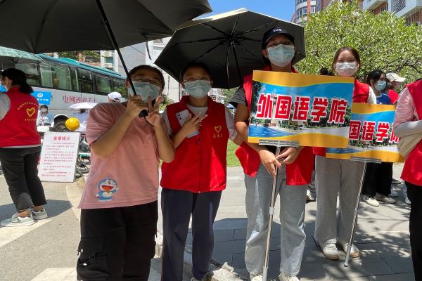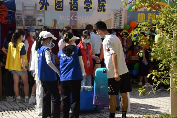 “感恩·圆梦”义工服务队外国语学院分队、外国语学院各大机构以及各班的志愿者们积极响应迎新安排,从大本营搭建到物资运送再到对接新生,为迎新工作做了充足的准备。烈阳当空,外语学生们引导师弟师妹们进入大本营进行注册,有条不紊,相继接过大大小小的行李运送到相应的楼层。外国语学院团委青年志愿者协会干部21翻译4班陈丽淇说道:“当了志愿者才发现,原来有这么多工作需要提前安排,准备应急方案并现场协调,虽然累,但也感受到了真切的快乐。”去年作为新生时,她深刻感受到了师兄师姐的热情,今年成为了志愿者,更想将这份情谊与温暖传承下去。