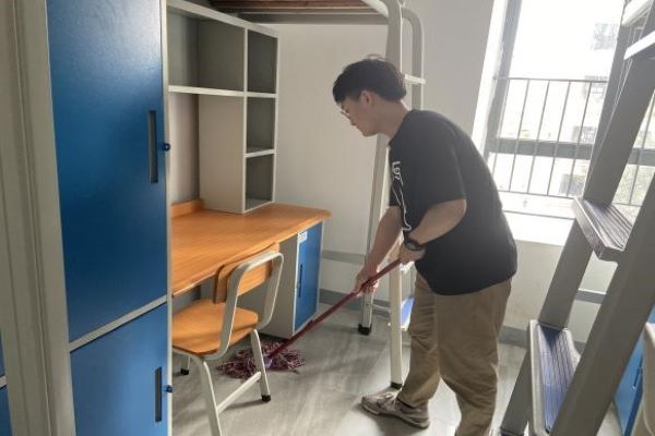 (迎新前辅导员和助班为新生打扫宿舍2)