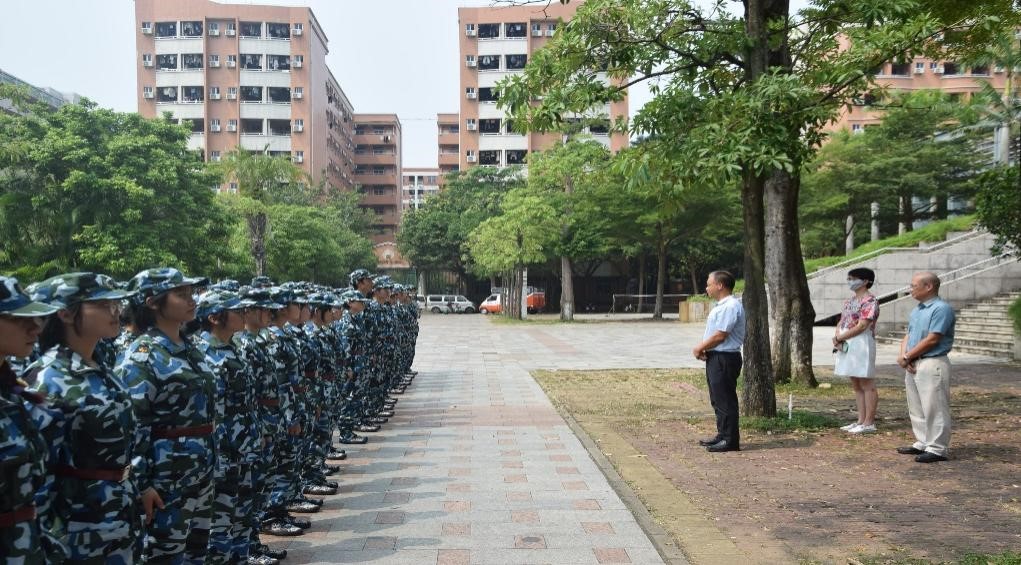 陈永国勉励新生在接下来军训中严格听从教官的指挥与安排,通过军训感受军人的风采,传承军队的优良作风,传承发扬不畏困难、迎难而上的优良品质,感悟教育的本质和人生的真谛,在军训过程中学会面对和克服挫折,朝着德智体美劳全面发展,最后给新生们发放了清凉饮品。
