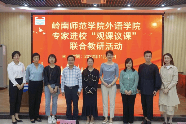 11月14日下午,外国语学院专家进校“观课议课”联合教研活动在湛江二中霞山校区举行,本次活动的主题是“”基于群文阅读的课内外教学一体化”。这是学院U-G-S外语教育教研共同体实施基础教育帮扶高质量发展的一次重要研讨活动。外国语学院吴晓春副院长(主持全面工作)、刘玉梅教授(英语专业负责人),梁天柱副教授、蔡秋文老师、黎璇老师、外国语学院驻湛江二中实习生、湛江二中领导、湛江二中英语科组全体教师参加活动。