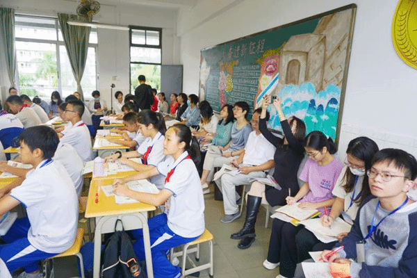 外国语学院专家教师团队与湛江二中英语科组共同观看了湛江二中新教师龙琪在七年级(6)班的研讨课授课。龙琪通过新颖的课堂导入和多样的课堂活动形式,有序完成了三篇体裁不同的文本的阅读,引发学生思考如何拥有身心健康的生活。