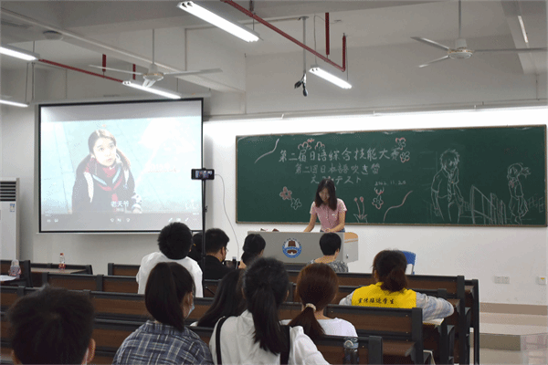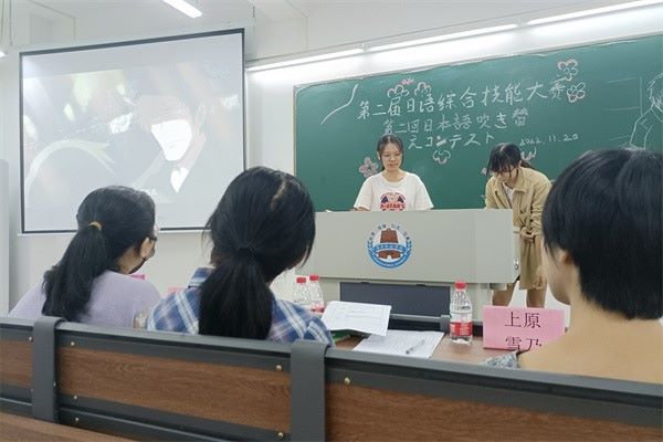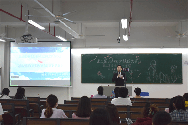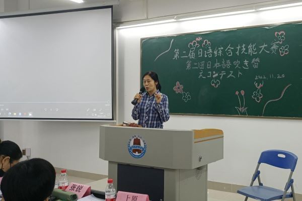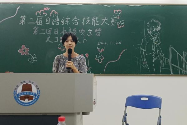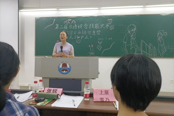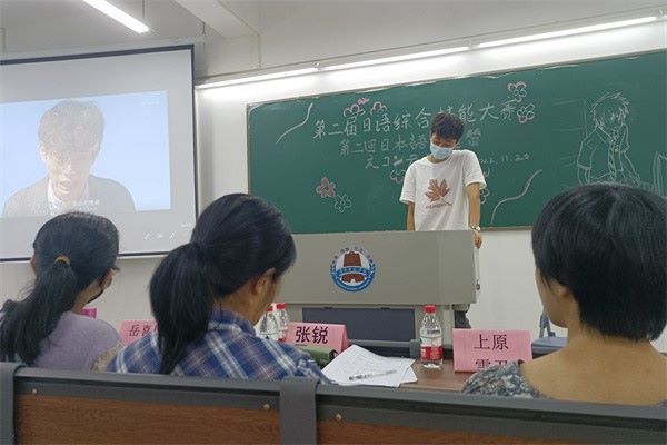 11月20日上午,外国语学院日本文化研究协会在教五A213召开了第二届日语综合技能之配音大赛决赛。外国语学院日语教师岳喜凤、张锐、上原雪乃出席了本次活动并担任评委。此外,决赛现场通过视频直播的方式供与全校师生实时观看。