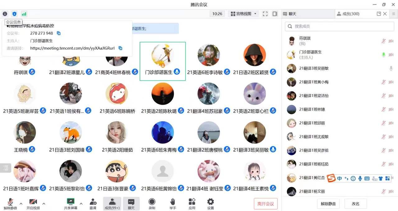 3月27日晚,外国语学院针对春季好发传染病之水痘防控知识举办了腾讯线上培训活动,学校门诊部卫生防疫科谌捷主任、2021级辅导员符琪琪老师、2021级全体同学参加了本次培训会。