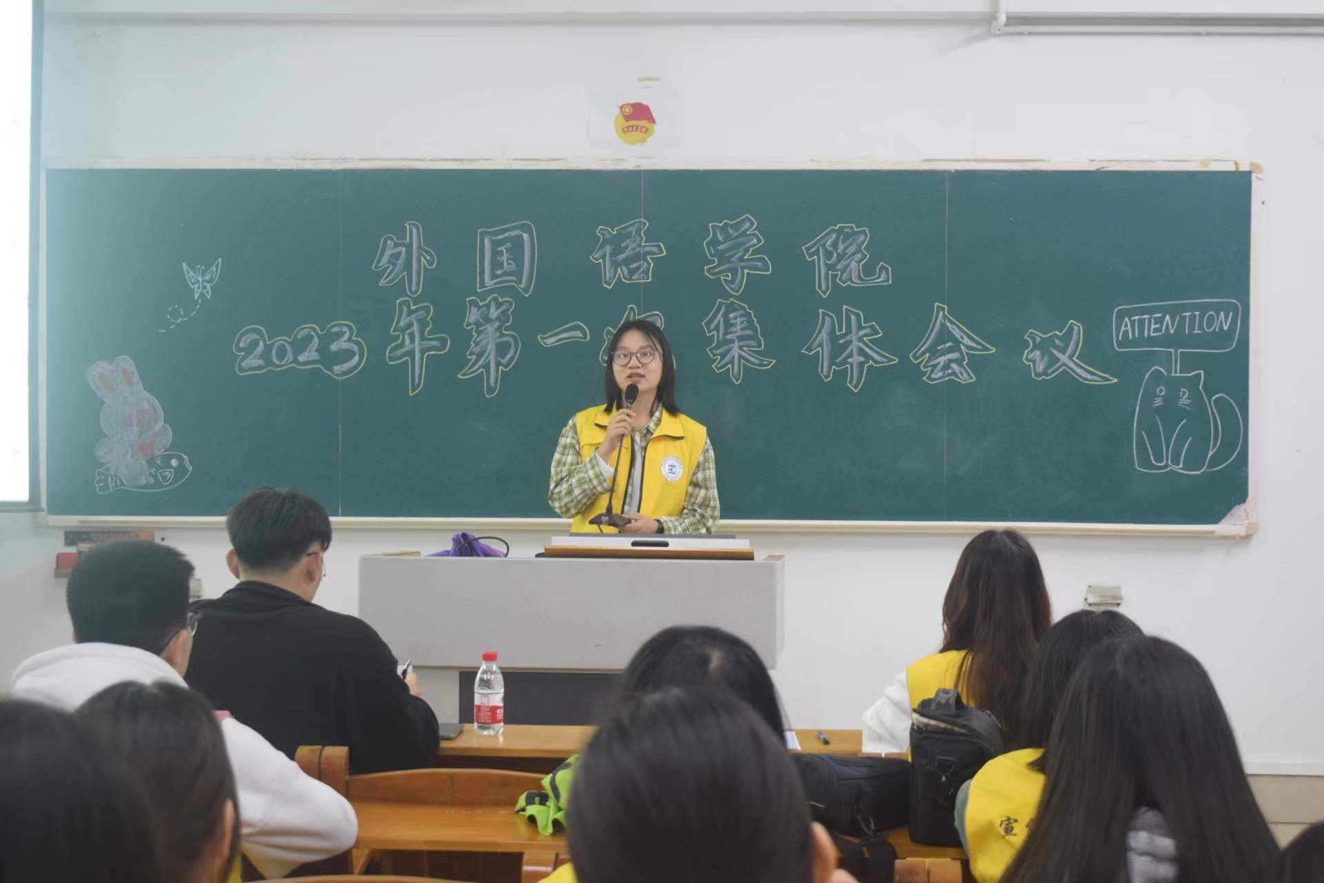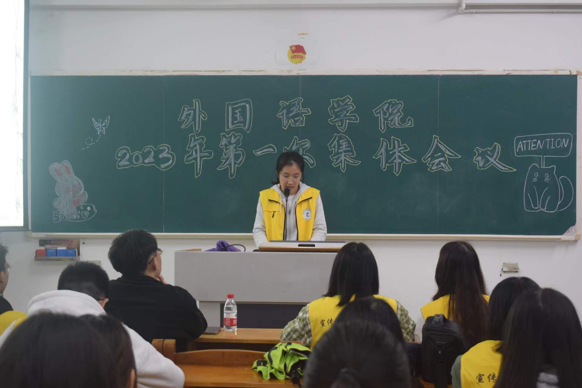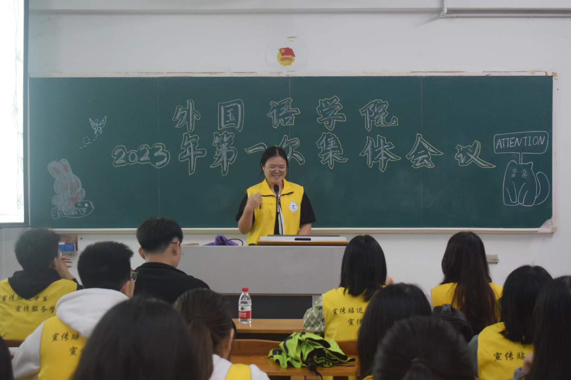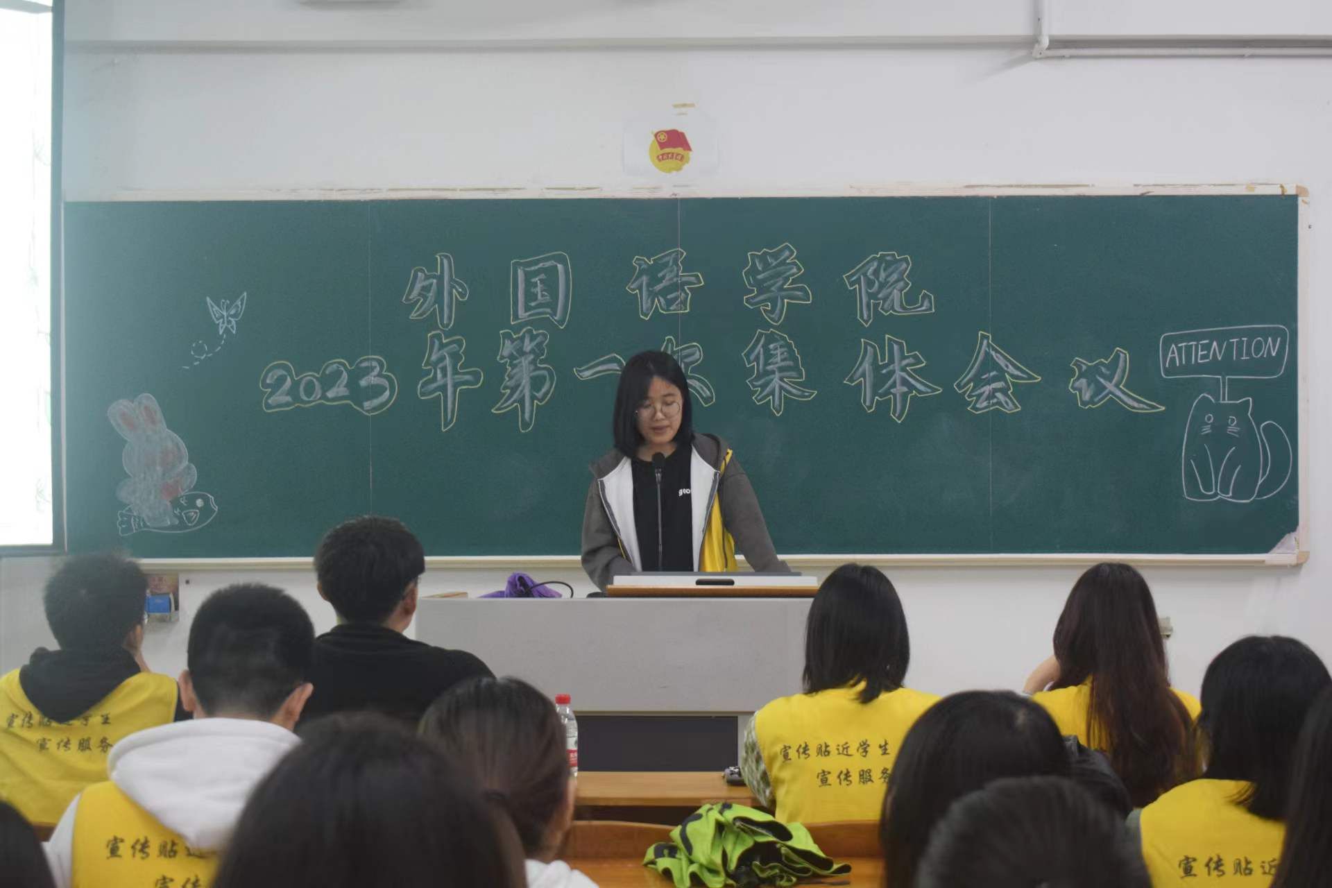 宣传贴近学生,宣传服务学工。3月31日晚,外国语学院宣传中心于教三206召开2023年首次全体会议。出席本次会议的有,外国语学院宣传中心指导老师陈秋湛、主任何丽晖、副主任陈春颖和陈卓鹏、前主任汪景有以及全体干部。会议由宣传中心副主任陈春颖主持。