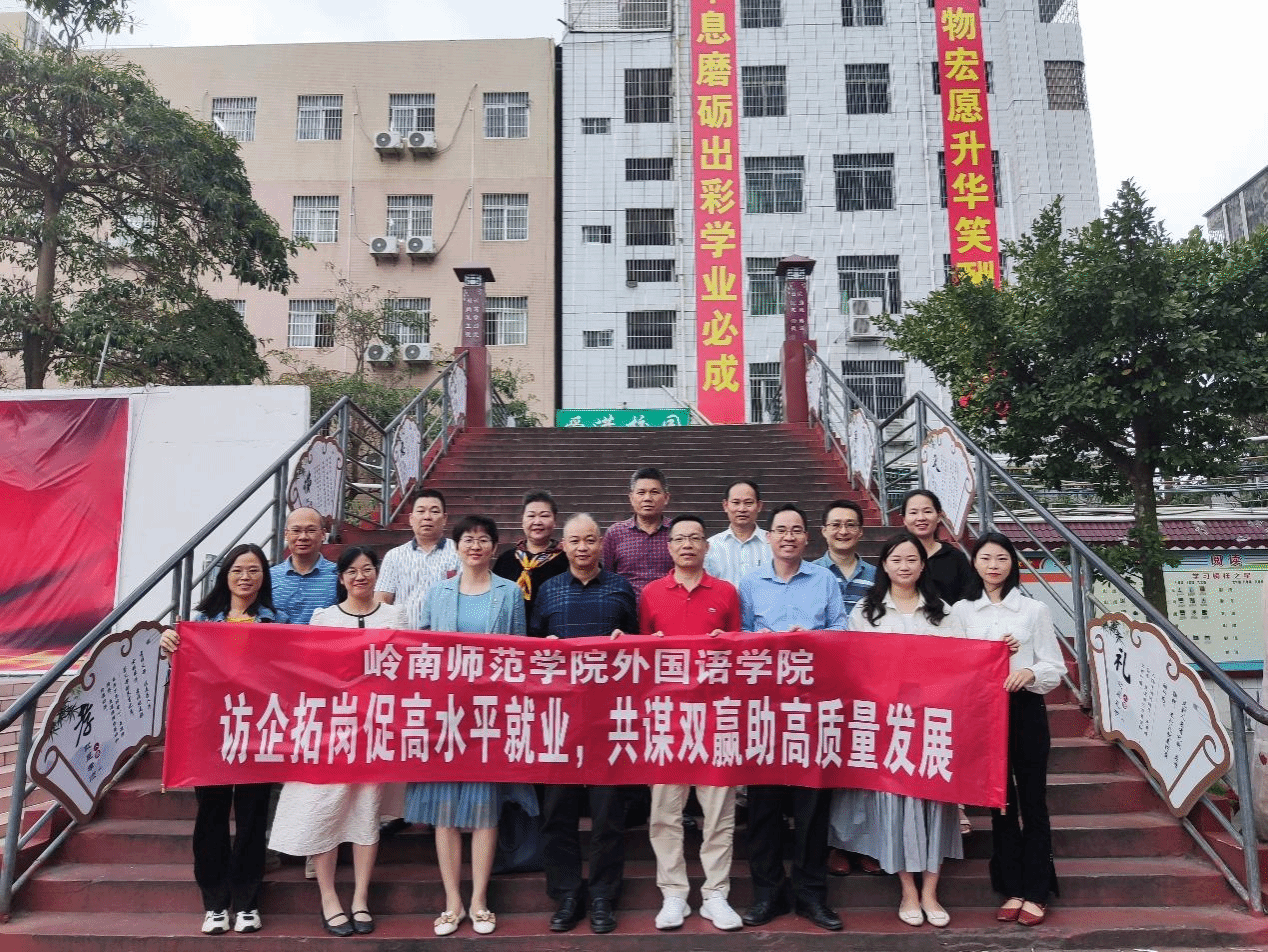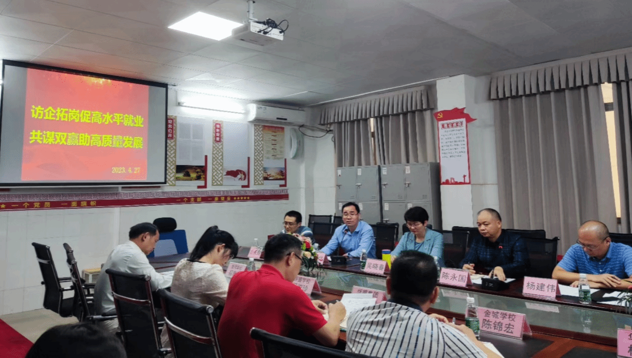 为深入贯彻主题教育要求,全面落实 “访企拓岗促就业“专项行动工作部署,进一步开拓就业岗位,协同校企深度合作育人,提高人才培养质量,促进毕业生高水平就业,4月28日,外国语学院党委陈永国书记、主持行政全面工作吴晓春副院长、党委杨建伟副书记、英语系古永辉主任、学工办宋水凤老师一行与数学与统计学院党委全光华副书记前往湛江市恒盛实验中学开展访企拓岗调研会,参加调研会的有广东省优盛教育集团及其属下四校五区(湛江市恒盛实验学校、湛江市金城学校、湛江市华港学校本部和北桥校区、湛江市霞山区智洋学校)负责人及校长及校友代表。