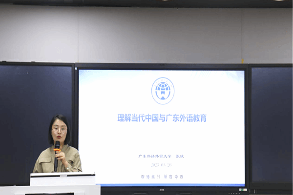 学术沙龙上,广东外语外贸大学英语语言文化学院院长张欣教授作了题为《理解当代中国与广东外语教育》的专题报告。教育部本科教学工作评估专家董金伟教授作了题为《现代外语教学理念与英语教师专业发展》的专题报告。