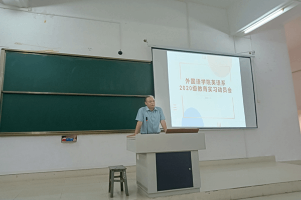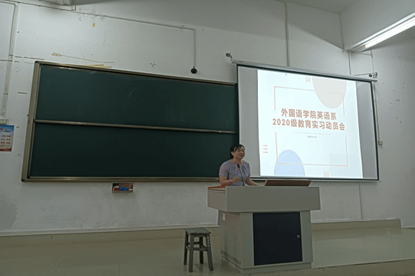 6月13日上午,外国语学院英语系在教三611教室举行了2020级英语师范生教育实行动员大会。本次大会由英语系副主任唐汉娟主持。出席本次大会的人员有外国语学院党委书记陈永国、党委副书记杨建伟、英语专业负责人刘玉梅、实习指导教师尉万传教授和陈益莲老师。