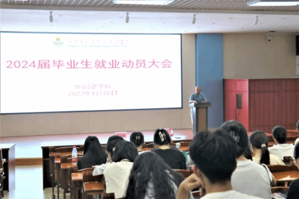 为进一步帮助2024届毕业生树立正确的就业观念,把握就业机会,实现毕业生高质量多元化就业。9月26日晚上,外国语学院于教三511顺利召开2024届毕业生就业动员大会,党委书记陈永国、党委副书记杨建伟、辅导员黄子琦老师出席本次会议,会议由黄子琦老师主持。