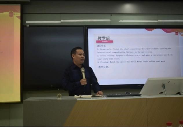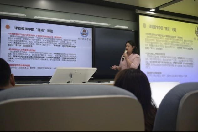 精彩说课绽魅力,以说促教助成长。本次说课比赛主要是外国语学院为推进课程思政建设,落实立德树人的根本任务,促进“以学为中心,以教为主导”的课堂教学理念和课程思政教育理念的实施、信息技术与教学过程融合,提升课堂教学质量,增进外国语学院教师教学经验交流,增强教师的“育人”理念的一次重要活动。在陈湛妍的主持下,说课比赛正式拉开拉开帷幕。其中,张小燕提出要立足于教材,善于借助语篇内容进行课程思政,并鼓励同学们积极运用实例进行介绍说明,以此达到价值引领的目的。此外,她还借助相关实践成果对“运用热点问题引起学生的兴趣与共鸣,以此加深学生对社会主义核心价值观的理解与认同。”的观点进行有力说明。