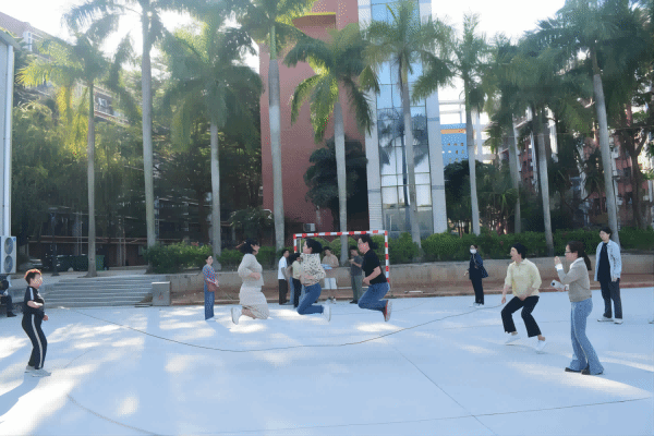 (老师们在参加“集体跳大绳”比赛项目)