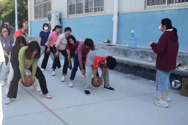 (老师们在参加“抢皇后”比赛项目)