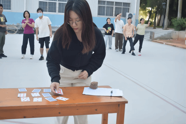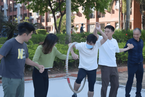 (老师们在参加“环环相扣”比赛项目)