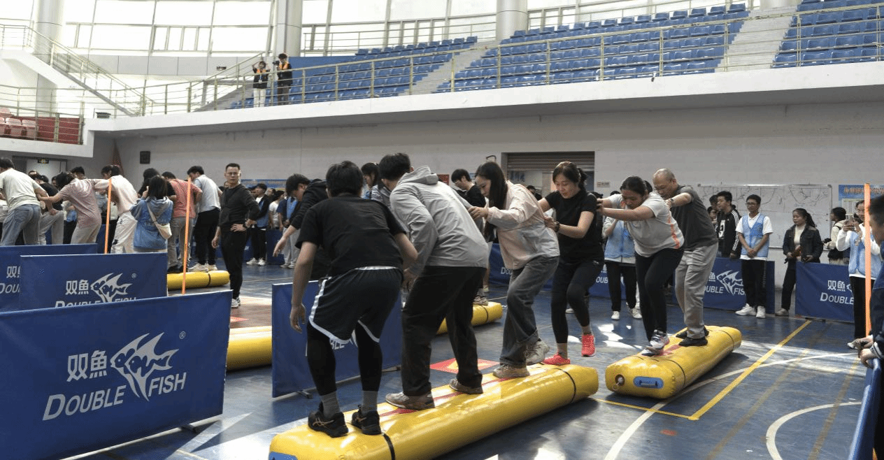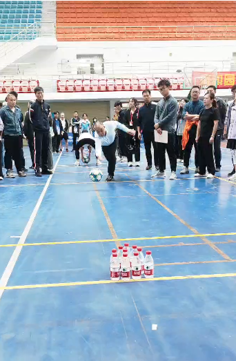 在这场趣味运动会中,老师们亲身参与各种有趣的比赛项目。参赛队伍们都竞相展现出奇思妙想的创意和团队精神,将运动场变成了一个充满欢声笑语的乐园。