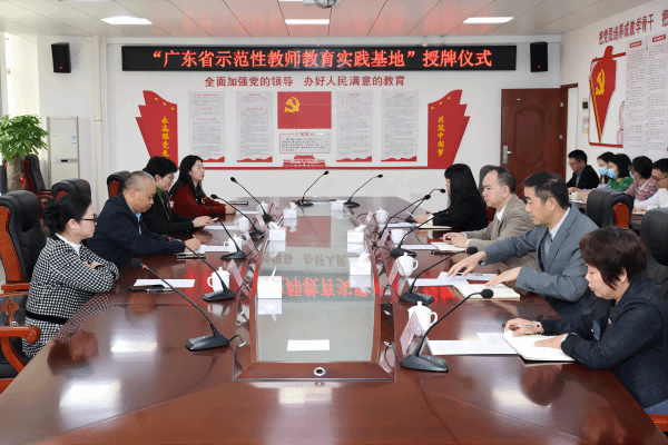 1月 10 日下午,外国语学院和廉江市实验学校在厚德楼五楼会议室举行调研交流会暨广东省示范性教师教育实践基地授牌仪式,开启校校共建的创新实践,进一步开展师范生教育培养的深度合作,探索人才培养模式创新,完善实践课程体系建设,建立合作开展基础英语教育教研、科研课题研究体系。外国语学院党委书记陈永国,吴晓春院长,廉江市实验学校董事长陈武杰,罗吉祥校长,初中部英语科组老师等出席会议,会议由初中部校长黄俊芬主持。