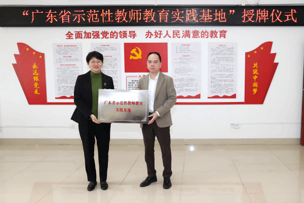 会上,外国语学院和廉江市实验学校共同为“广东省示范性教师教育实践基地”进行授牌。