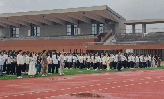 当晨光刺破天际,校园田径场已肃然有序。护旗手身着整齐服装,迈着铿锵有力的正步,护送五星红旗缓缓走向旗杆,每一步都踏得坚定,每一声都震彻人心,全场师生屏息凝视,目光紧紧追随那抹耀眼的中国红。