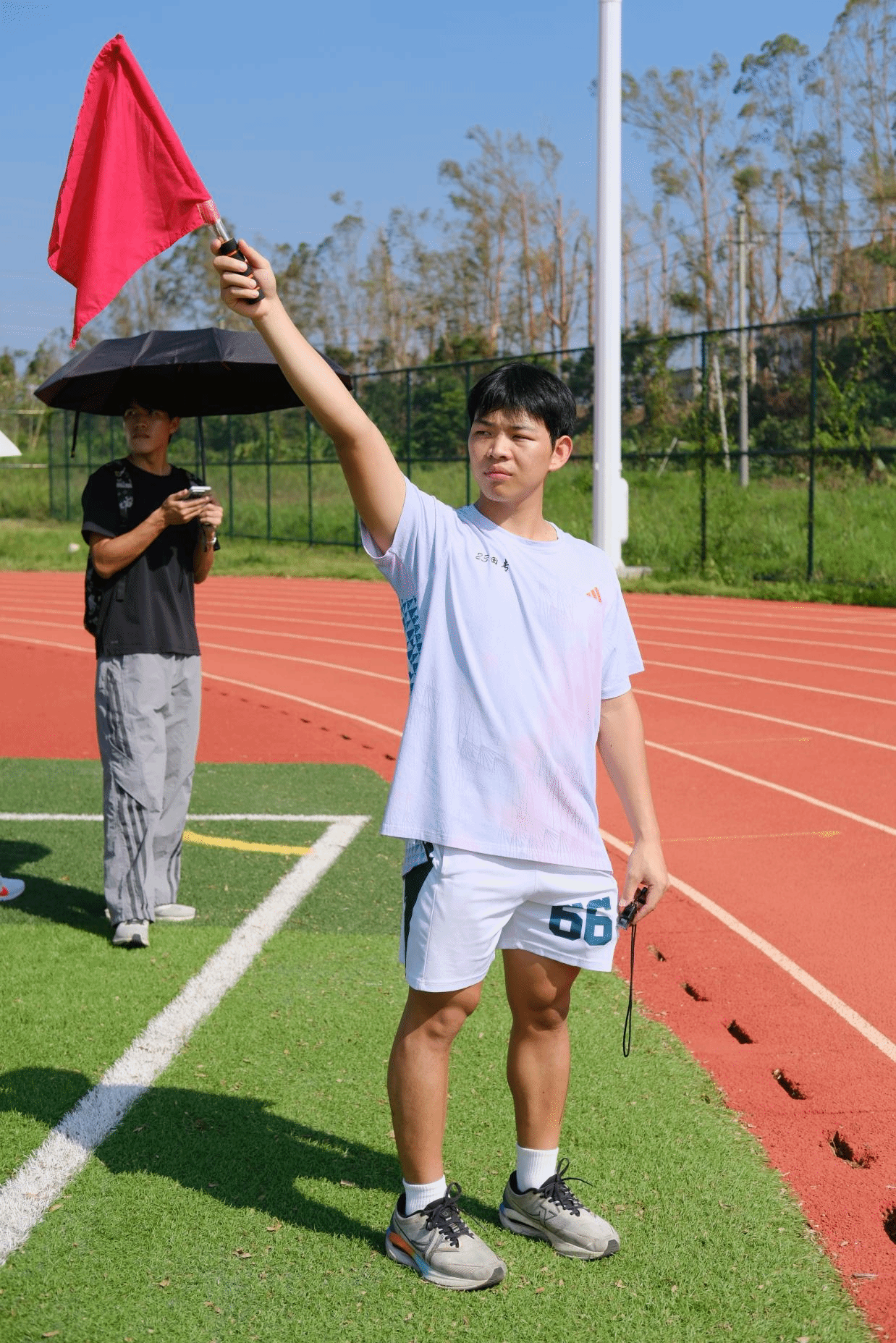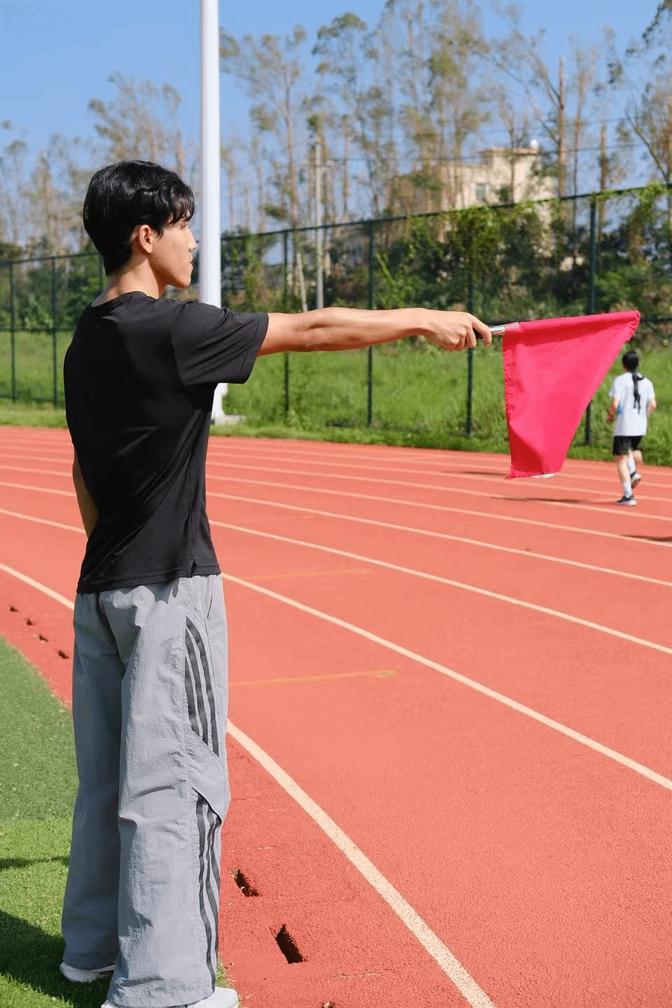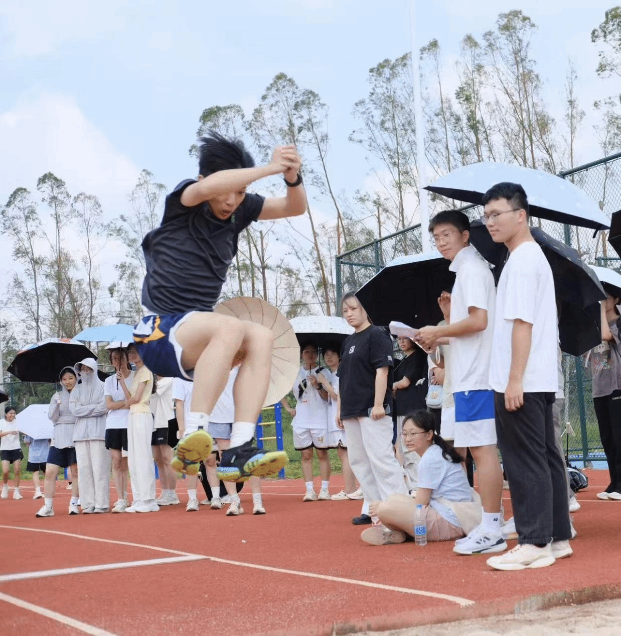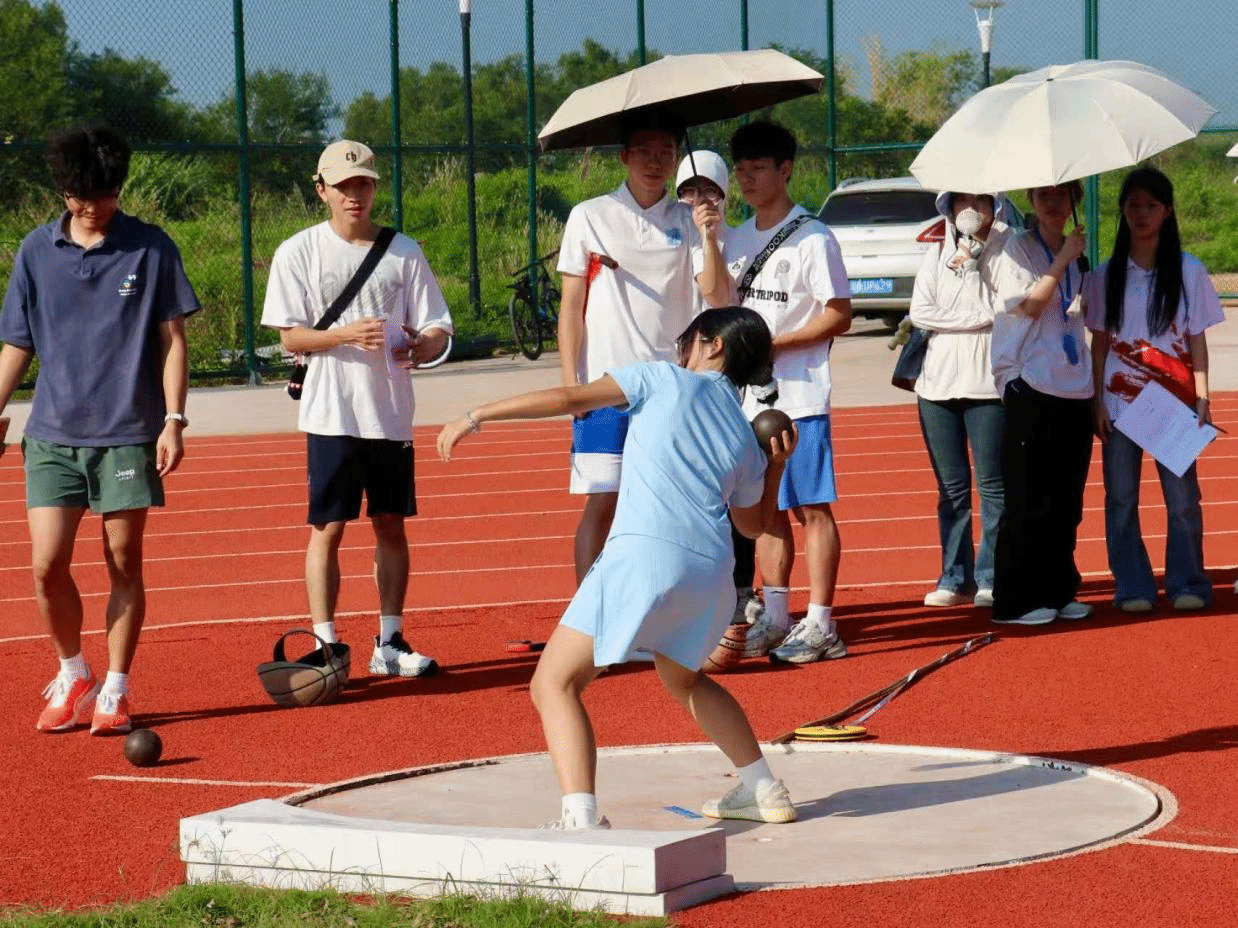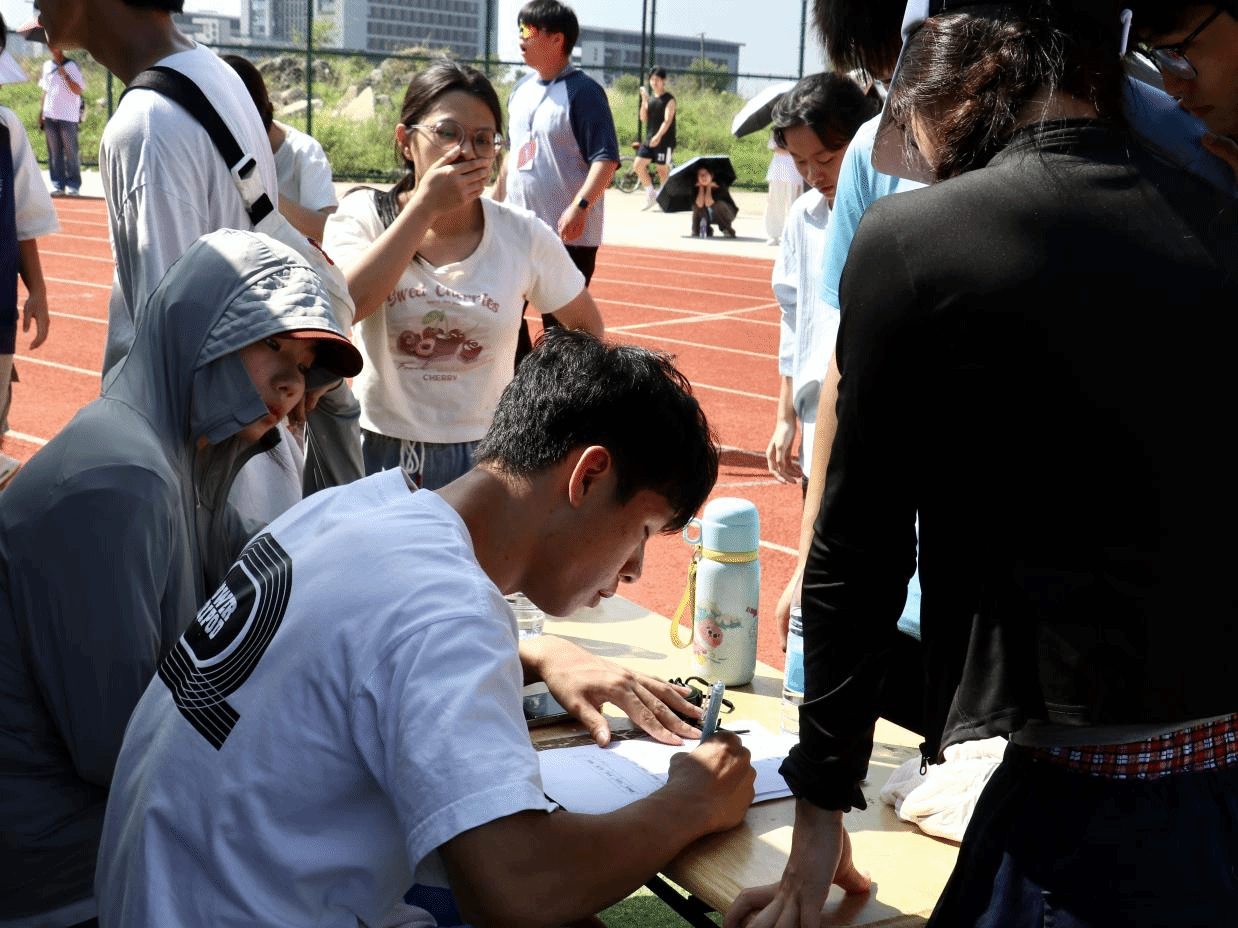 院运会的“流畅度”,藏在每一个细节里。体科院的持证裁判紧握秒表,屏息计时;后勤组提前备好葡萄糖、创可贴,甚至学会拉伸动作,只为在选手冲线后给予最及时的照顾。看台上,同学们的呐喊声此起彼伏,横幅在光影间起伏,连风都仿佛被这份热情感染。
