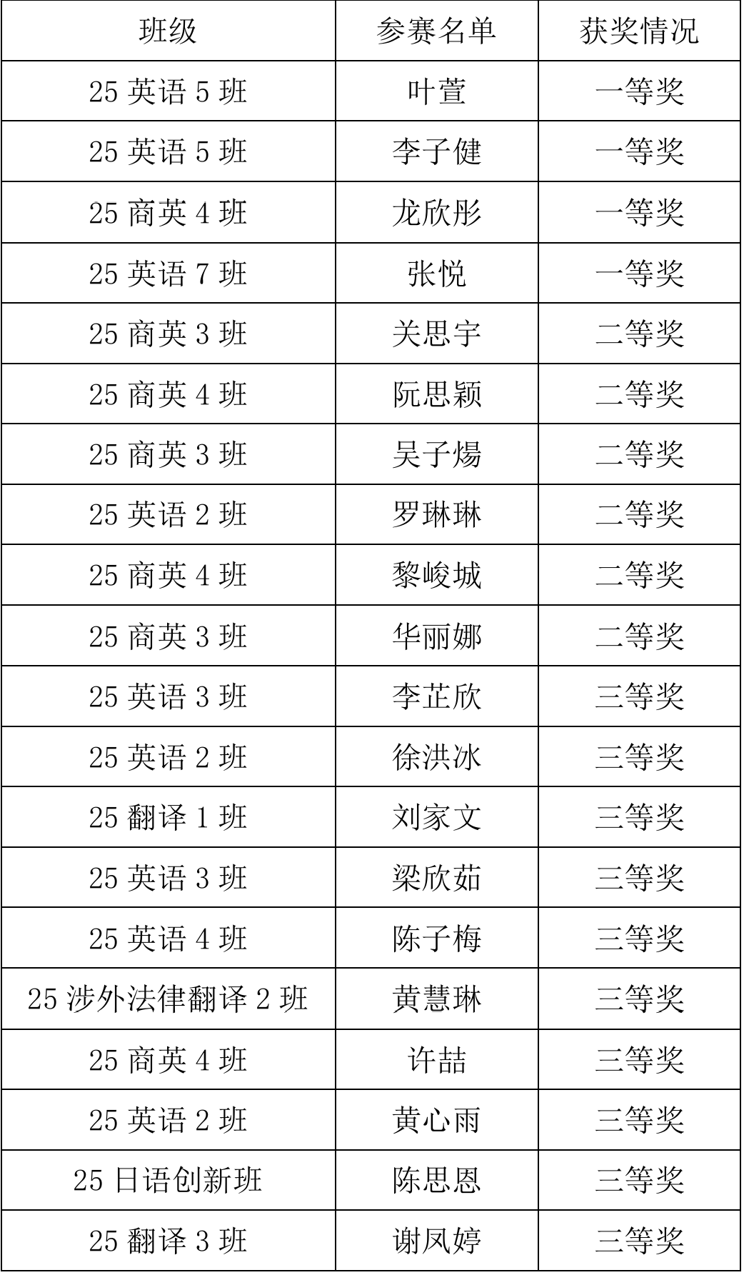 以下是本次活动的获奖名单: