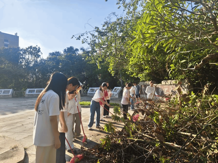 参观学习活动结束后,为守护纪念园这一红色教育场所的整洁与庄重,陈秋湛老师号召大家开展纪念园清扫行动,并分发扫把、垃圾袋等清洁工具。随后,全员响应、分工协作,迅速投入清扫工作中。经过全体成员的共同努力,纪念园环境更显整洁,为红色教育场所增添了一份庄重。
