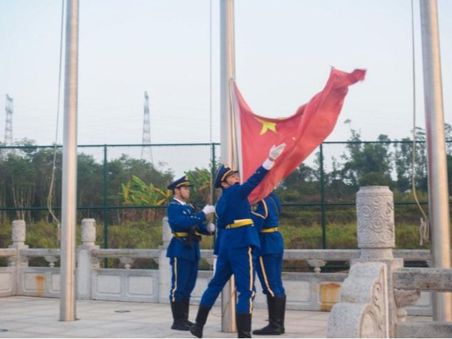 为保障仪式顺利开展,学院提前完成场地布置、人员组织与流程彩排,各年级辅导员、学生干部提前到岗引导师生有序入场,现场秩序井然。七点整,升旗仪式正式开始,国旗护卫队迈着铿锵有力的步伐护送国旗至升旗台。伴随着雄壮的《义勇军进行曲》,鲜艳的五星红旗徐徐升起,全体师生肃立注目,高唱国歌,目光中满是对祖国的热爱与对新学期的期许。