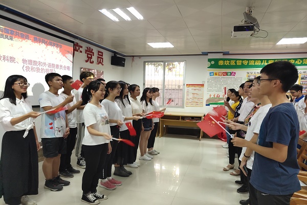 10月26日,外国语学院、教育科学学院及物理科学与技术学院在赤坎区留守流动儿童辅导中心举行了“让知识播种,手拉手共同成长”志愿活动开班仪式。参加本次活动的有岭师关工委常务副主任王仁谦, 团赤坎区委书记杨桦青,赤坎区妇联副主席钟波,赤坎区军休所总负责人田欣民,外国语学院团委青年志愿者协会的干部们,以及作为志愿者的外语院部分学生。