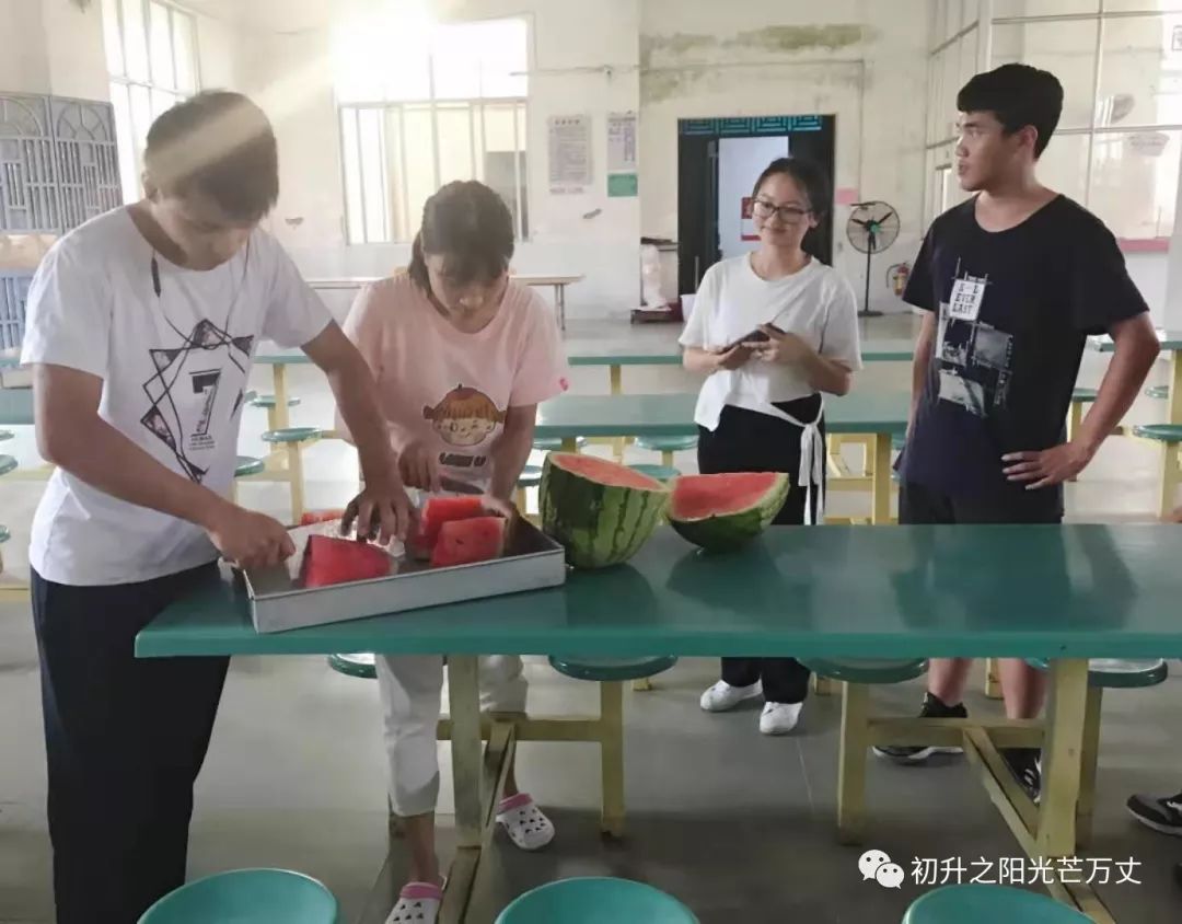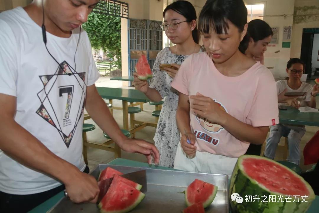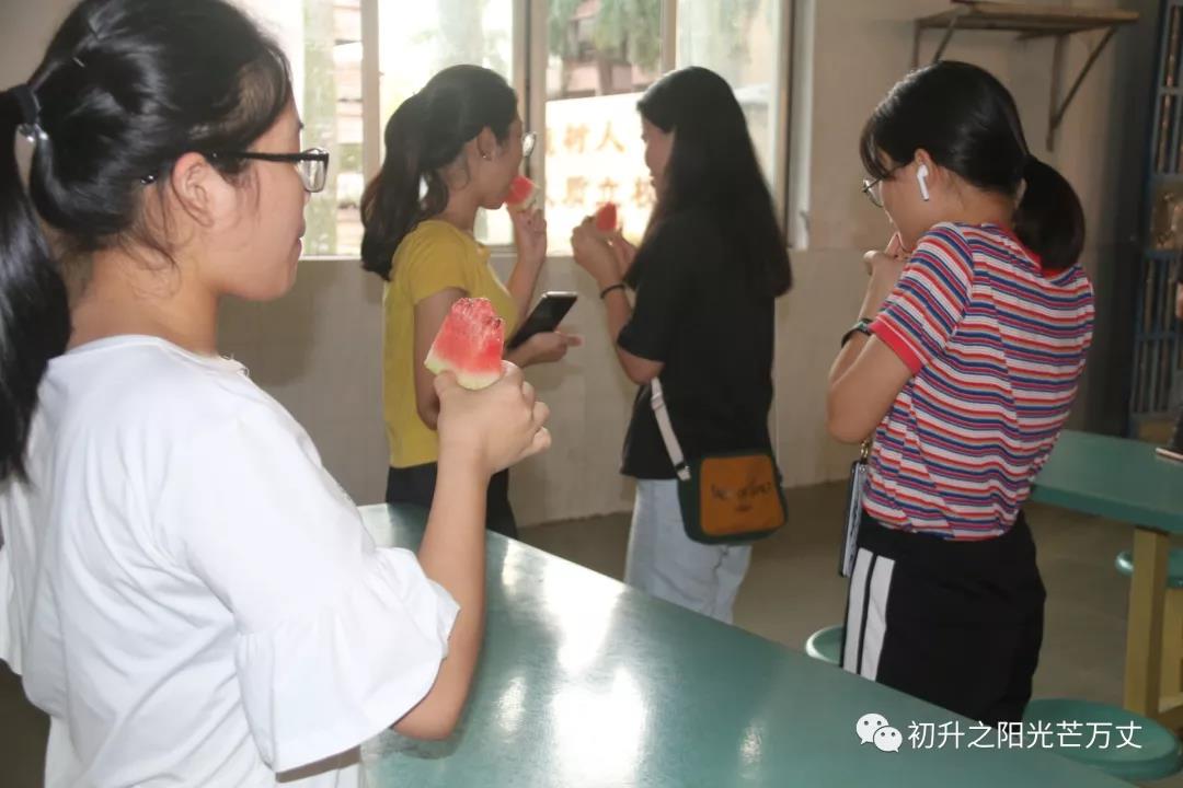 7月18日上午11点15分,学院党委副书记梁煜鹏,辅导员罗成燕、张晓婷、陈韵桥老师来到了“初阳”社会实践队基地龙眼中学,给我们送清凉并对我们的工作进行问候与指导。