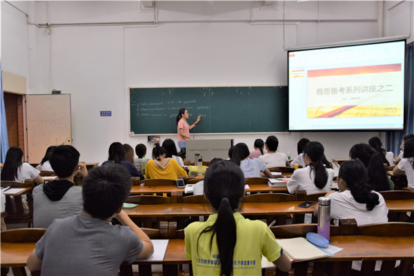 2018年6月3日晚,外语院于教三108室成功举办了雅思备考系列讲座之二,主讲人为蒋悦老师,有外语院15、16、17级感兴趣的同学参加。