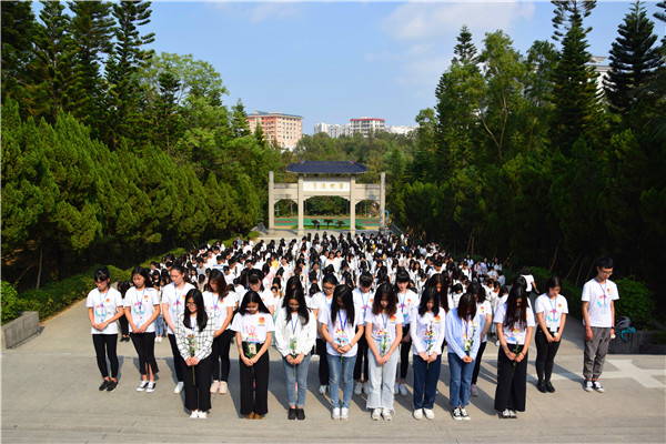 15点整,外国语学院2015、2016和2017级全体支部的志愿者在外国语学院青年志愿者协会干部的带领下从雷阳广场出发,有秩序地前往寸金桥公园烈士陵园纪念碑进行扫墓。到达烈士陵园后,大家怀着缅怀之情走到纪念碑前。在庄严肃穆的气氛下,外语院2018年淸明节扫墓活动正式开始。这次扫墓活动共有五个环节:历史讲解队讲解历史、于雅丽老师致哀悼词、秘书长带领出席师生默哀一分钟、瞻仰纪念碑,各支部献花,合影留念。