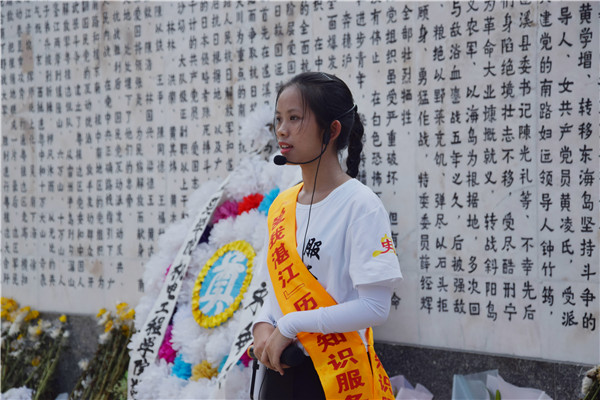 首先,法政学院“爱我湛江历史知识”服务队的三名解说员先后为志愿者讲解了有关的历史光荣事迹。现场的志愿者都安静地聆听着,虽然烈士们已经逝去,但烈士们为革命英勇牺牲的事迹永留青史。