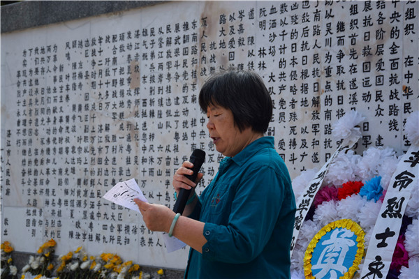 随后,于雅丽老师致哀悼词:站在烈士碑前,我们悼念为人民解放,祖国繁荣而英勇牺牲的革命英雄。我们铭记明礼诚信,自强不息的民族精神。望着这庄严肃穆的纪念碑,我们铭记历史,珍爱和平。作为新世纪的接班人,我们必须认识到身上肩负的责任和使命,沿着革命先烈的足迹,为中华民族的伟大复兴而奋斗!