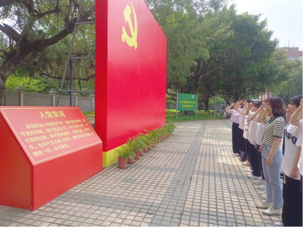 随后,在湛江博物馆广场,黄子琦领誓,党支部党员面向党旗,举起右手,进行了庄严宣誓。黄子琦勉励大家,要时刻铭记入党誓词,不断提升自己的党性修养和道德品质,为党的事业发展贡献力量。