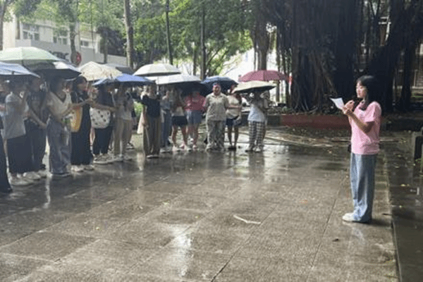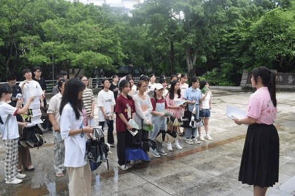 在百年师范纪念塔,“培根”宣讲团成员为新生讲解了岭南师范学院的前身雷州中学的校长兼伟大的革命活动家谭平山的事迹:日夜苦读考入北京大学,接受新文化、新思想的熏陶;体悟底层人民状况,积极探索救国救民道路;坚守革命信仰,领导广东青年运动,为革命事业抛头颅、洒热血;传播先进思想,培育革命后备军。以此勉励新生:“作为一名新时代的青年,我们应像谭平山先生那样,爱国爱党,无私为公,不懈奋斗。携着这份使命,担着这份责任,不惧风雨,勇担重任。”