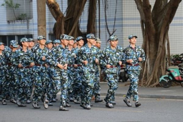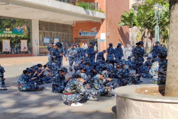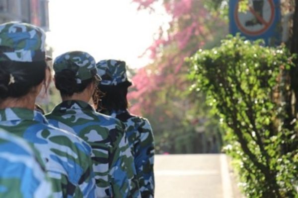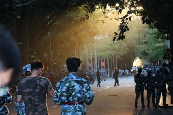 清晨凛冽的寒风,午后刺眼的阳光,多变的天气考验着每一个人的意志。烈日长空着迷彩,苍穹之下斗志昂。炽热的阳光洒在身上,同学们迈着整齐的步伐,喊着响亮的口号,毫不懈怠地对待每一场训练。
