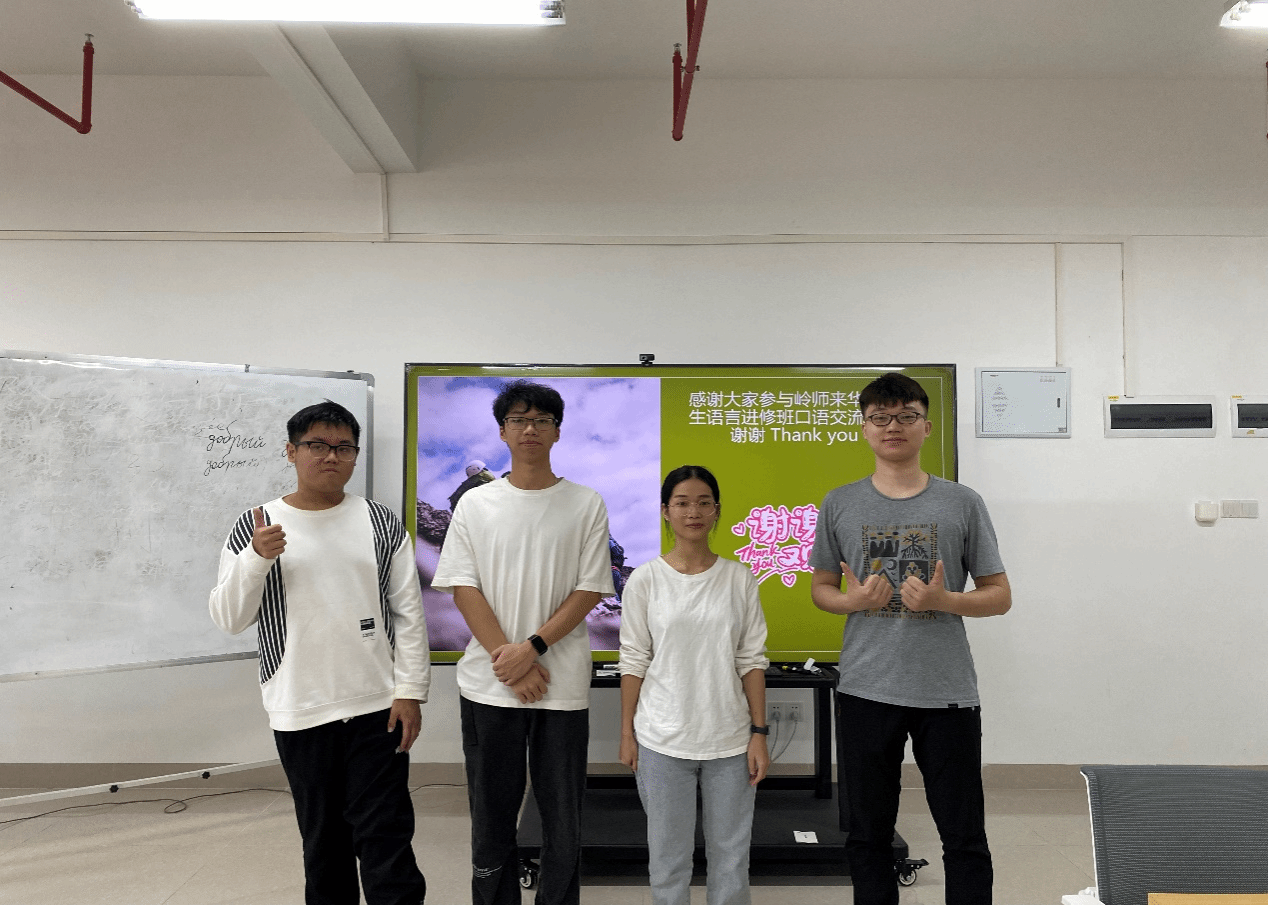 开展口语交流活动,促进中外文化交流。我校为岭师来华留学生语言进修班开展线下口语交流活动,本次口语交流活动得到了外国语学院院长吴晓春教授的全力支持以及高度关注,同时也得到国际商务与外事系主任李海红教授的有力指导。本次口语交流活动由外国语学院国际商务与外事系李媛媛老师组织协作,4位助理班主任全力协助,20级和21级商务英语专业学生作为志愿者积极参与本次口语交流活动。